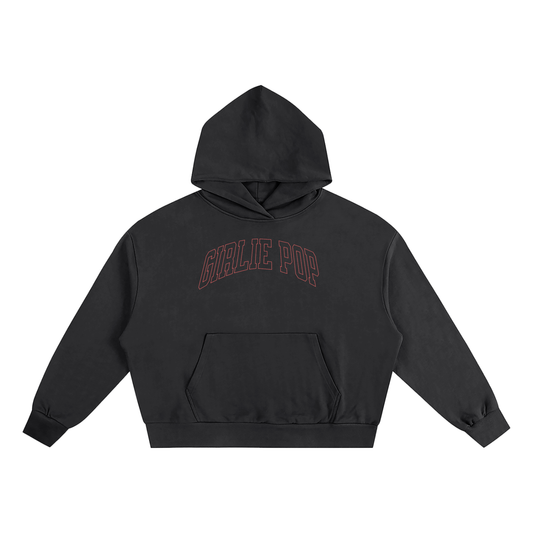 Beige with Black GirliePop Raw-Hem Color-Block Raglan Crop Sweatshirt - SGP