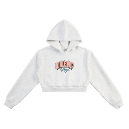 Flower Gray GirliePop Essential Cropped Zip-Up Hoodie